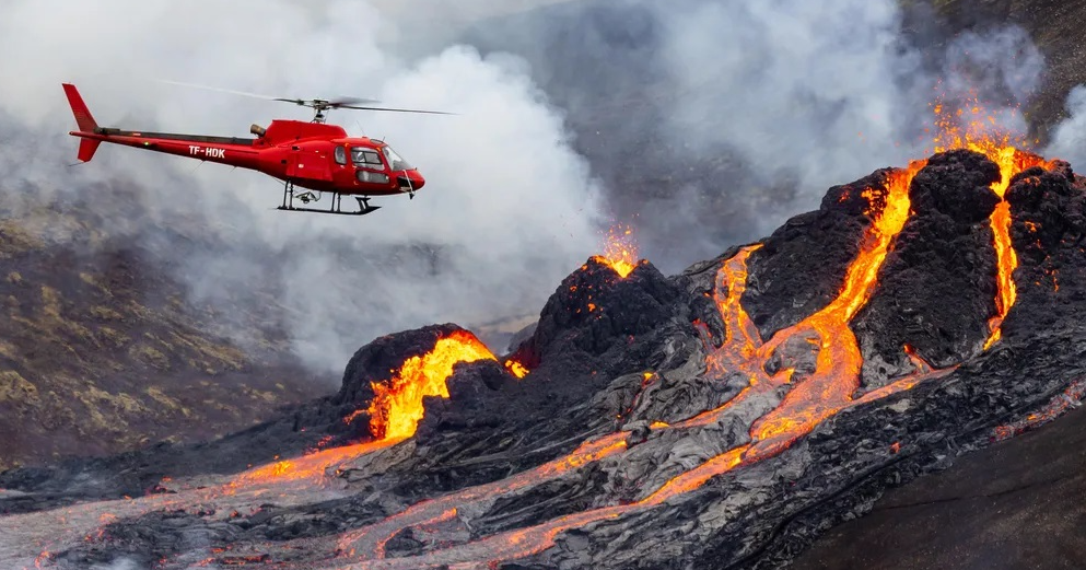 A volcano is erupting nearby. What's your response?
